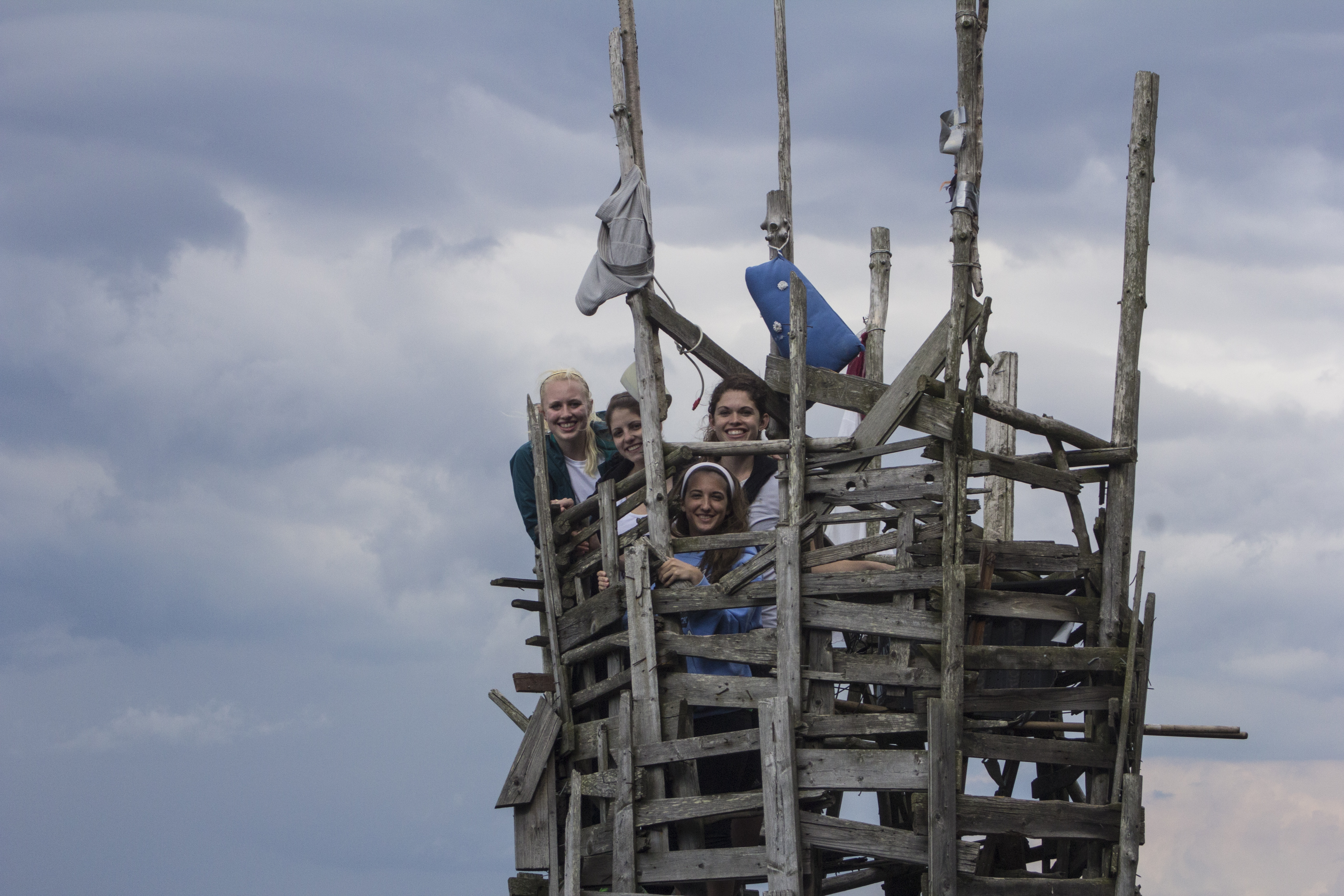 The structures at Nimis, have quite the history, and they took my breath away, as a design student. We had a 30 minute hike through the Swedish country side that headed into the woods. After walking down hill for a bit, we came to this gate, and it was just as crazy as the structures themselves. I mean, this whole thing, is held together with a ton of nails and the most random pieces of drift wood I’ve ever seen. The path or labyrinth down from the woods to the beach was pretty narrow and I was wondering how it stays together. Being an architecture and design major, I am always curious as to how structures are built and how they stay together. The coolest thing about the structures, is that they don’t have a direct way to the top, so you need to play around inside of them to figure out how to get to the top. Some have a spiral staircase/ ladder, but you have to find it. Once you’re at the top, you can see all up and down the coast, and one of the towers has a solar powered stereo system. When I was standing on the top of the structures, they started to sway a bit, so that was interesting.